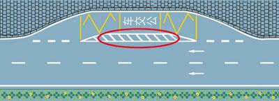 5. 赤い円中の路面標示はなにを示すか。