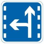 C. 車線変更が可能な方向を導く標示