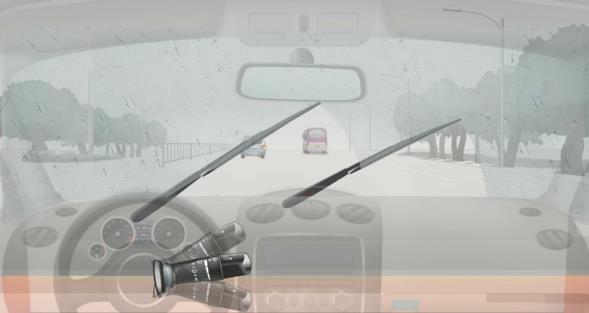 5. このスイッチを上下に引くと、フロントガラスのワイバーが作動する。