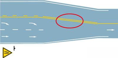 7. 図が示す円中の白い破線は、なにを示す路面標示か。