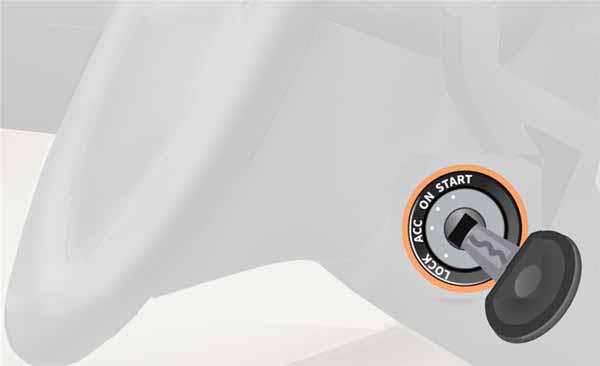 4. エンジンキーがLOCKの位置にある時に鍵を抜くと、ハンドルがロックされる。