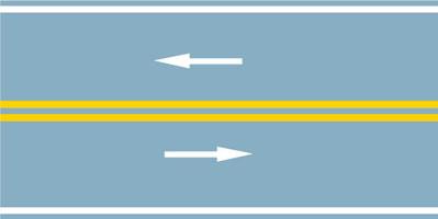 2. 道路中央の二本の黄色い実線は、なにを示す路面標示か。