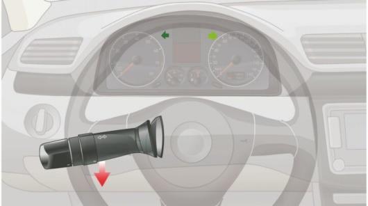 2. ウインカースイッチを下に下ろすと、右ウインカーがつく。